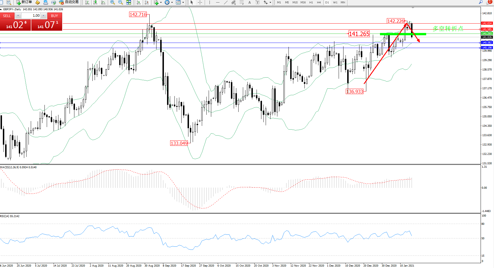 技术点评:多头动力延续布林带指标通道中上轨区间持续震荡上扬态势良好,高位抵达142.226位置节点后短暂遇阻回撤,高位震荡下行中,但多头上行趋势拉升态势依旧,关注中上轨区间节点,MACD指标处于0轴线上方多头区域平缓向上移动中,RSI指标处于50均衡线上方多头区域窄幅整理向上移动后出现短暂回撤;