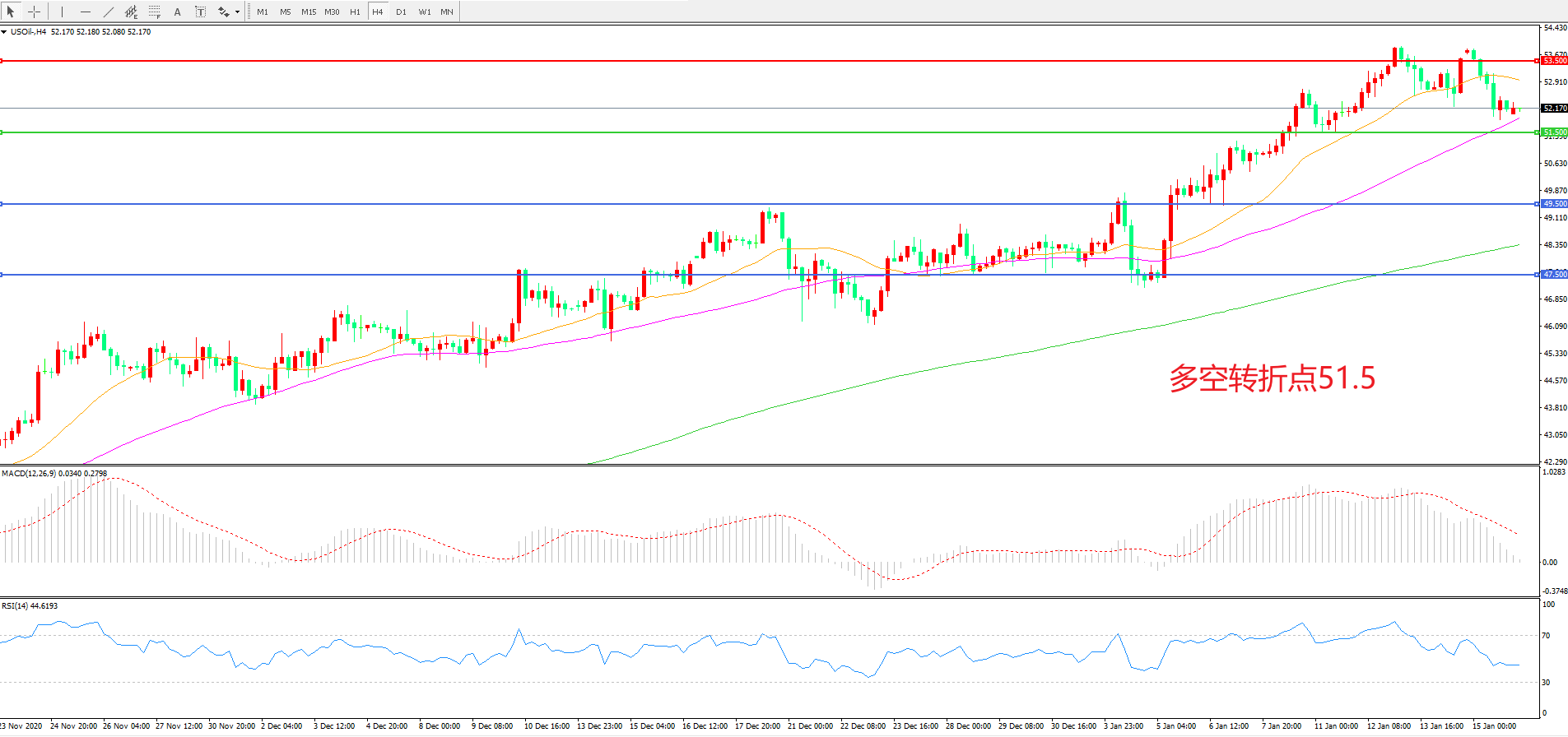 多空转折点:51.50