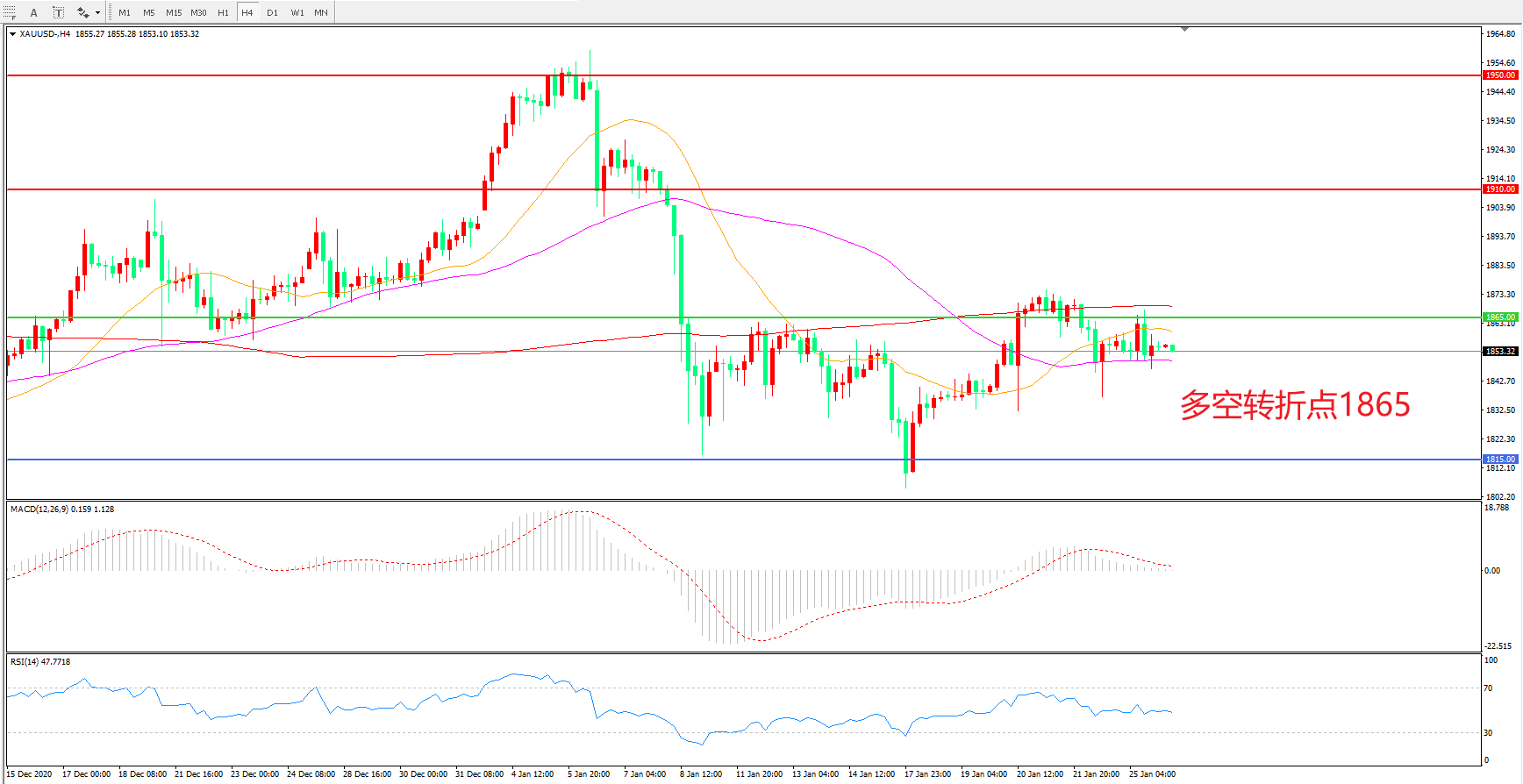 交易策略:在1865.00之下看跌,目标1815.00 1765.00