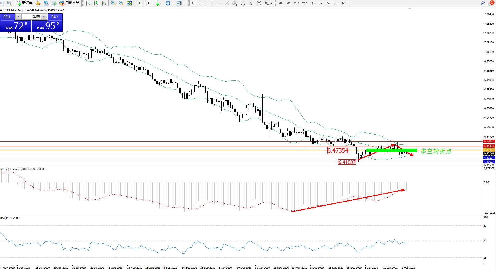 备选策略:6.47354上方看涨,目标6.49493、6.52092
