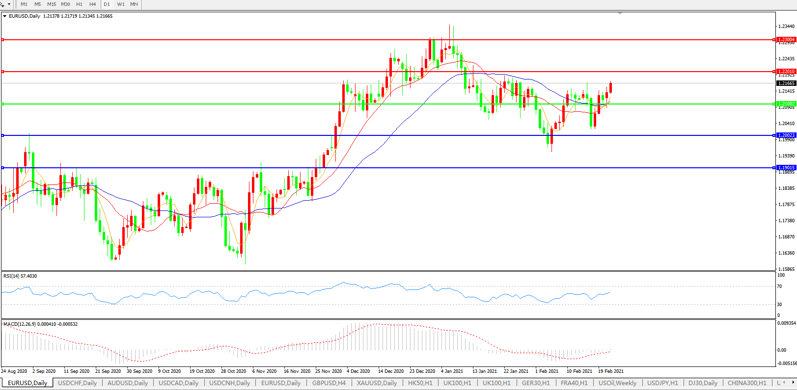 交易策略:1.2100上方看涨,目标1.2200、1.2300
