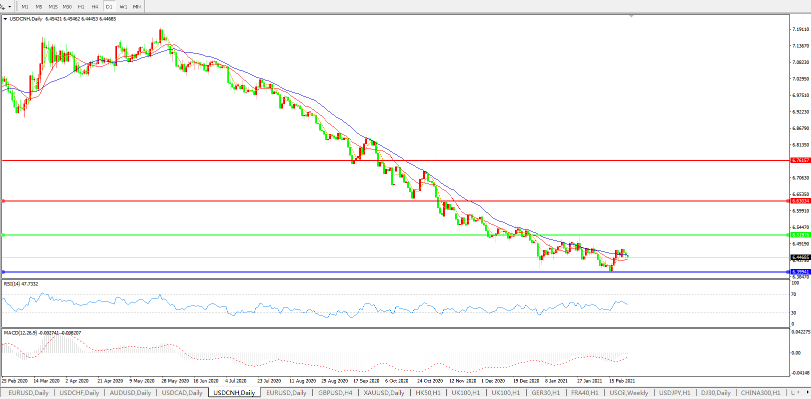 交易策略: 在6.5200之下,看跌,目标价位为6.4000,然后为6.2000。