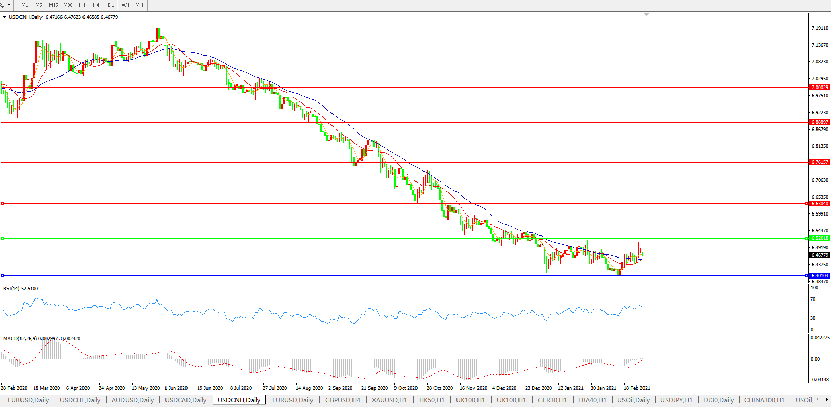 交易策略: 在6.5200之下,看跌,目标价位为6.4000,然后为6.2000。