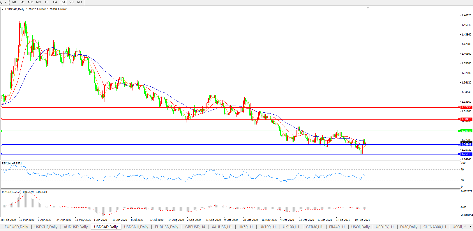 美元兑加元USDCAD    日线图: