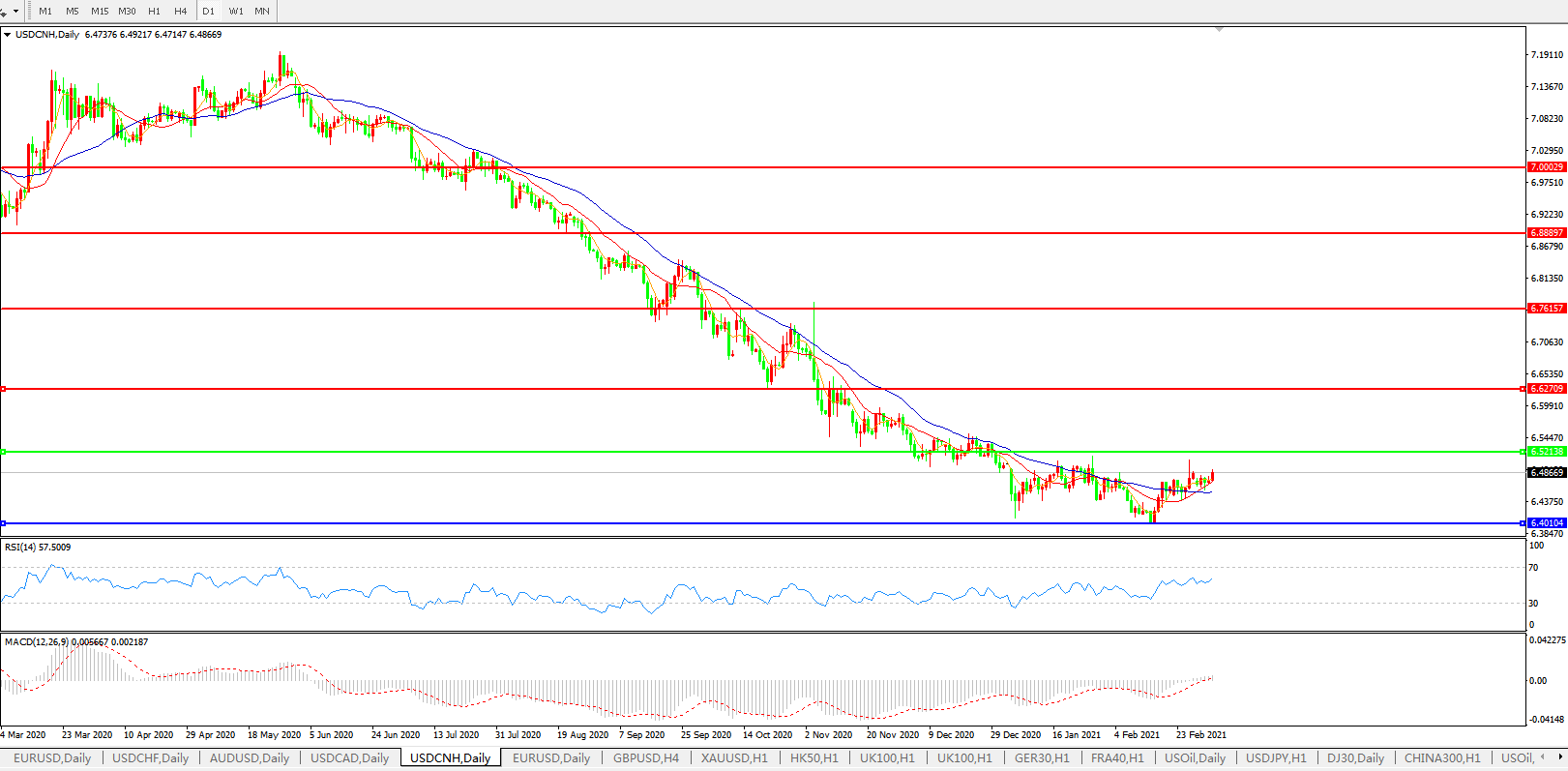 交易策略: 在6.5200之下,看跌,目标价位为6.4000,然后为6.2000。