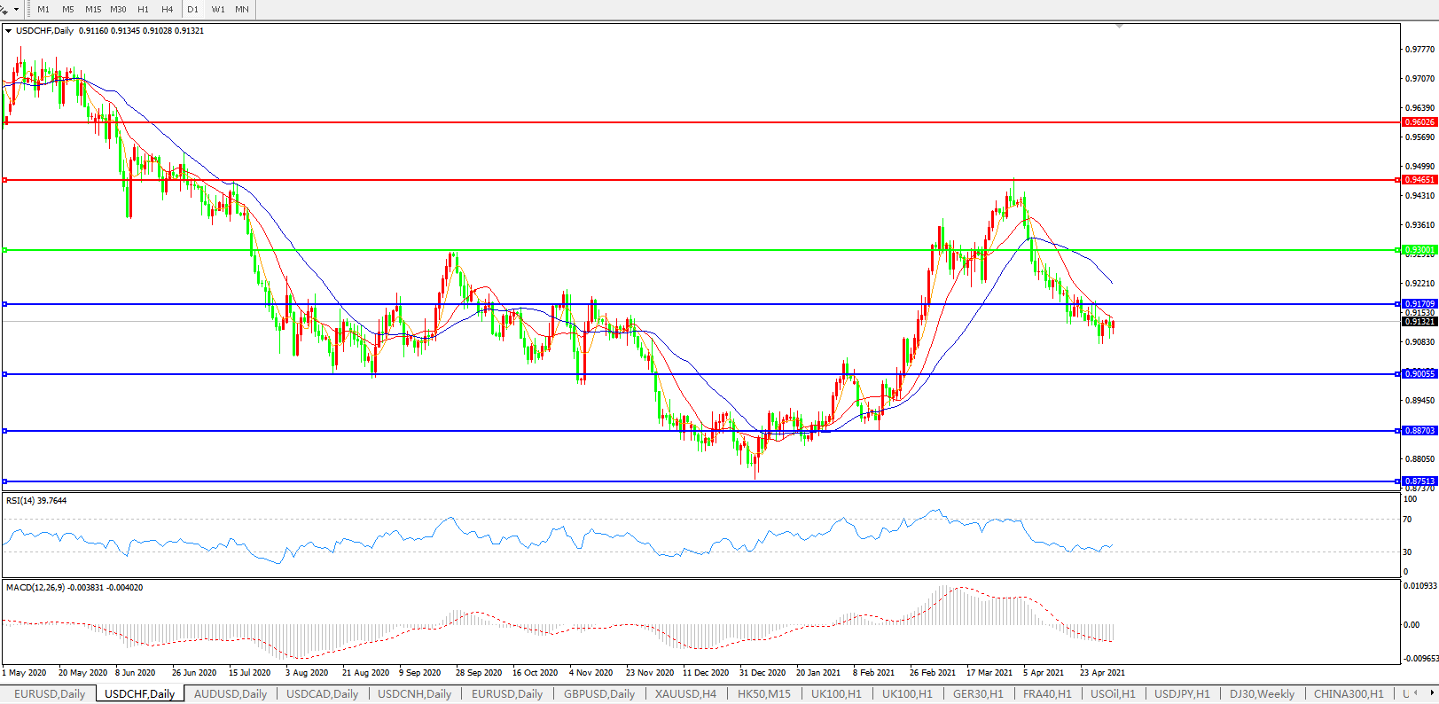 美国经济复苏强劲 ,美元兑瑞郎窄幅整理