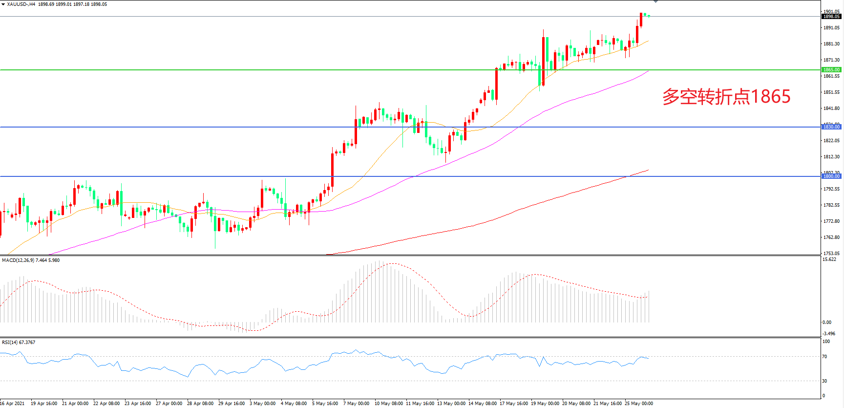 交易策略:在1865.00之上看涨,目标1900.00    1935.00