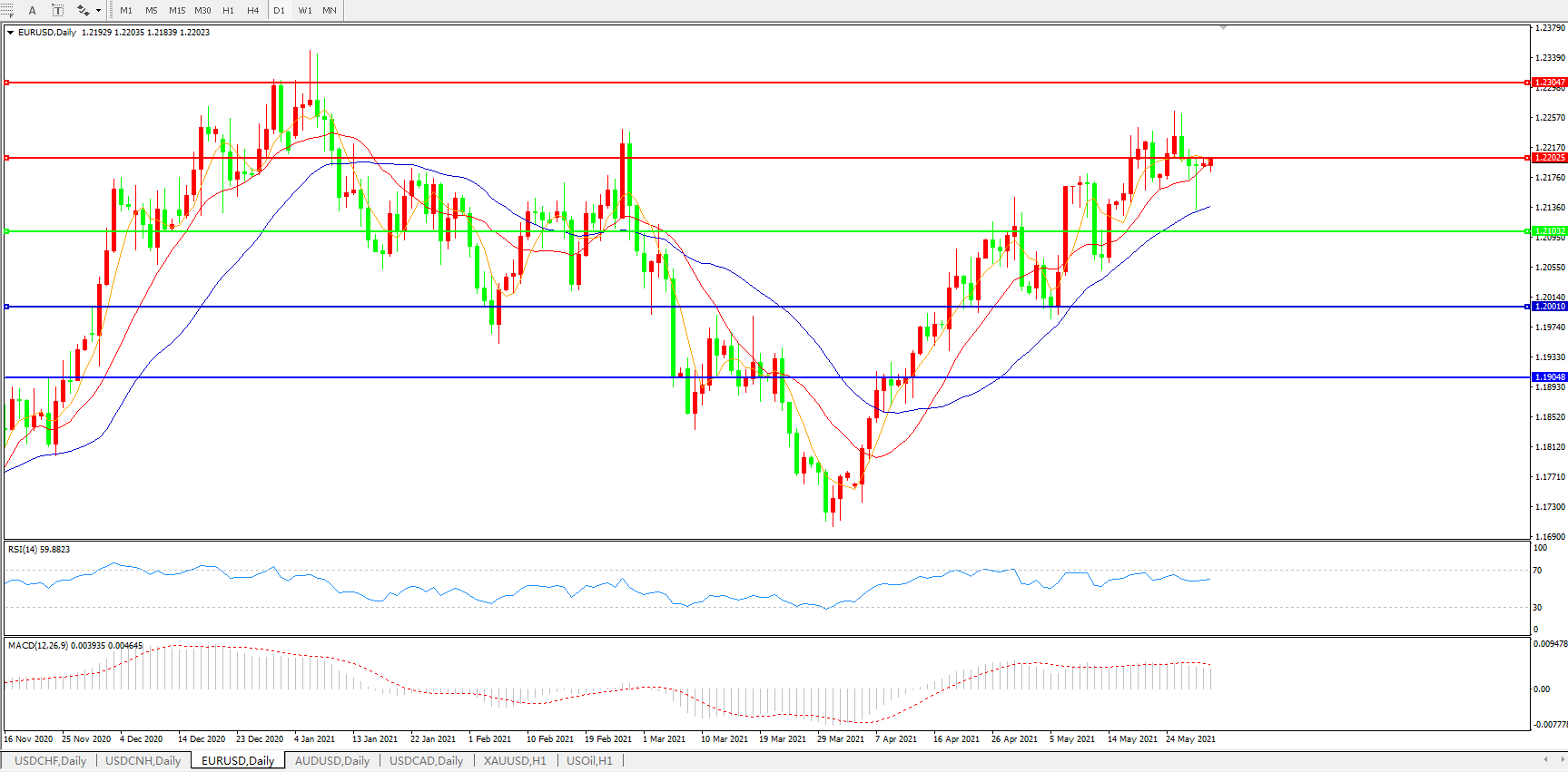 欧元兑美元EURUSD   日线图:
