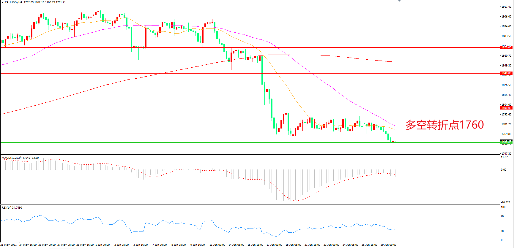 周二(6月29日),美国公布的4月20座大城市房价指数同比上涨14.88%,创下2005年以来的最高水平,美元指数受到提振明显攀升,金价承压下挫,收报1761.01美元/盎司。日内最重磅的数据无疑是有“小非农”之称的ADP就业人数,作为非农最重要的前瞻性数据,投资者将根据ADP数据表现来预测非农结果,看是否有重大变化促使美联储考虑比预期更早地收紧货币政策。