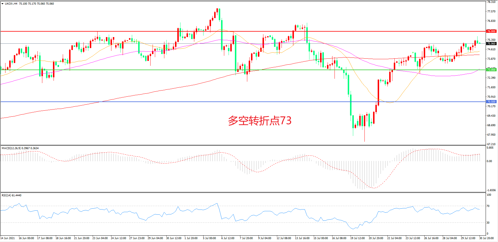 多空转折点:73.00
