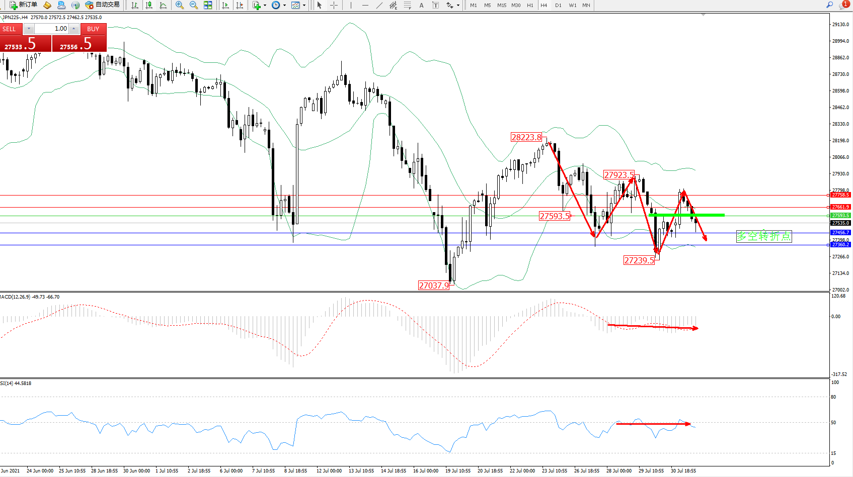 日经指数JPN225——4小时K线图显示: