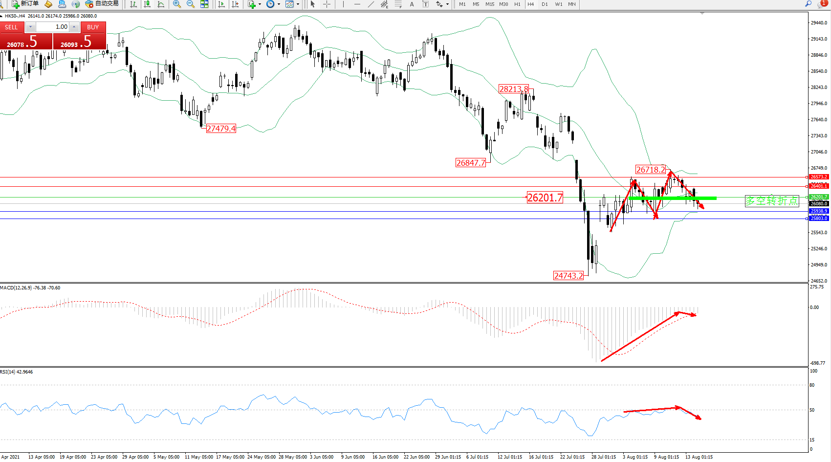 香港恒生指数8月16日(周一)收盘下跌210.16点,跌幅0.8%,报26181.46点;港股三大指数全线收跌,大型科网股再度重挫,致市场情绪全天低迷。恒生科技指数跌2.57%报6420点。大型科网股快手大跌近7%再创新低,美团大跌超5%,腾讯、京东、网易大跌超3%;恒大概念股、光伏股、区块链股、餐饮股等集体走低。今日大市成交额为1339亿港元,南下资金净流出29.6亿港元。南下资金今日净卖出56.31亿港元,连续3日净卖出。腾讯控股、美团、小米集团分别遭净卖出25.42亿港元、8.51亿港元、5.2亿港元;长城汽车逆势获净买入2.12亿港元。