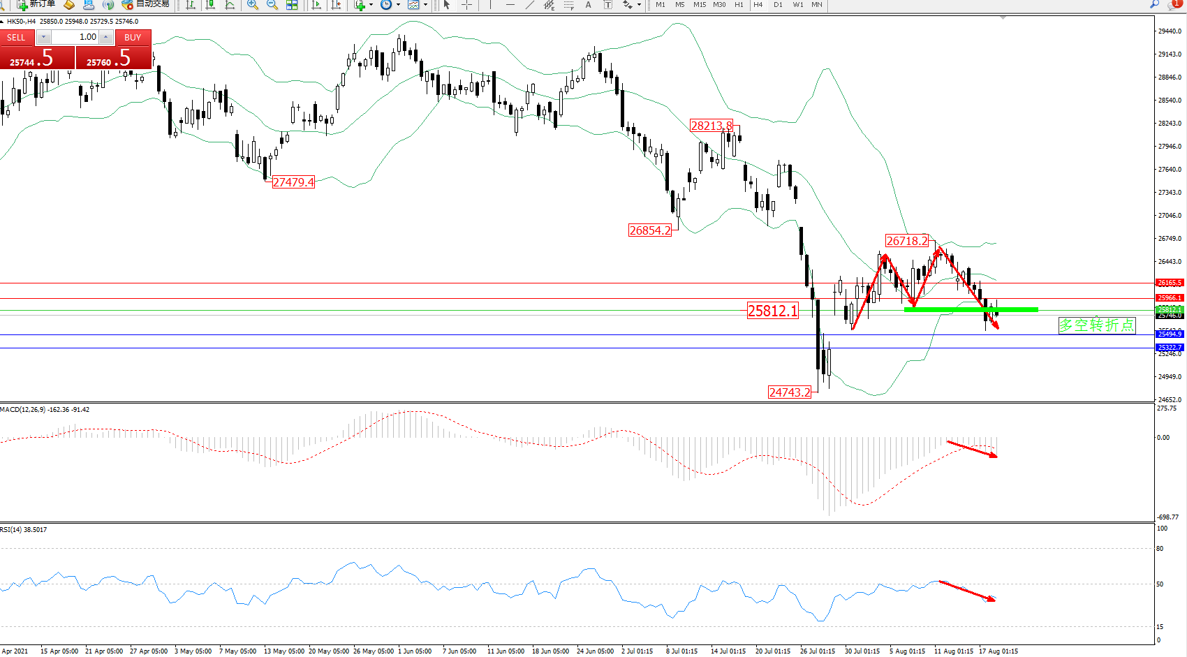 交易策略:25812下方看跌,目标25494、25322