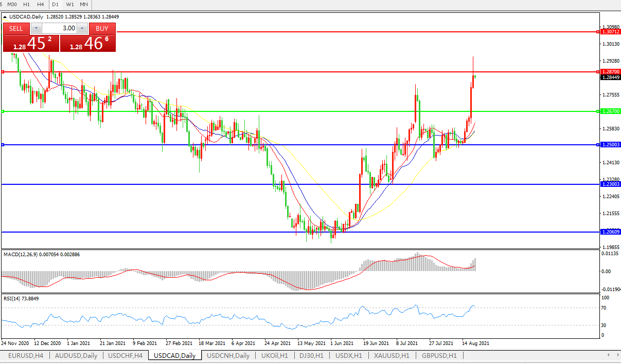 加元兑美元一度触及八个月最低的1.2949加元,因对全球经济的担忧导致油价进一步下跌。美元兑加元处于2020年3月来最超买状态。