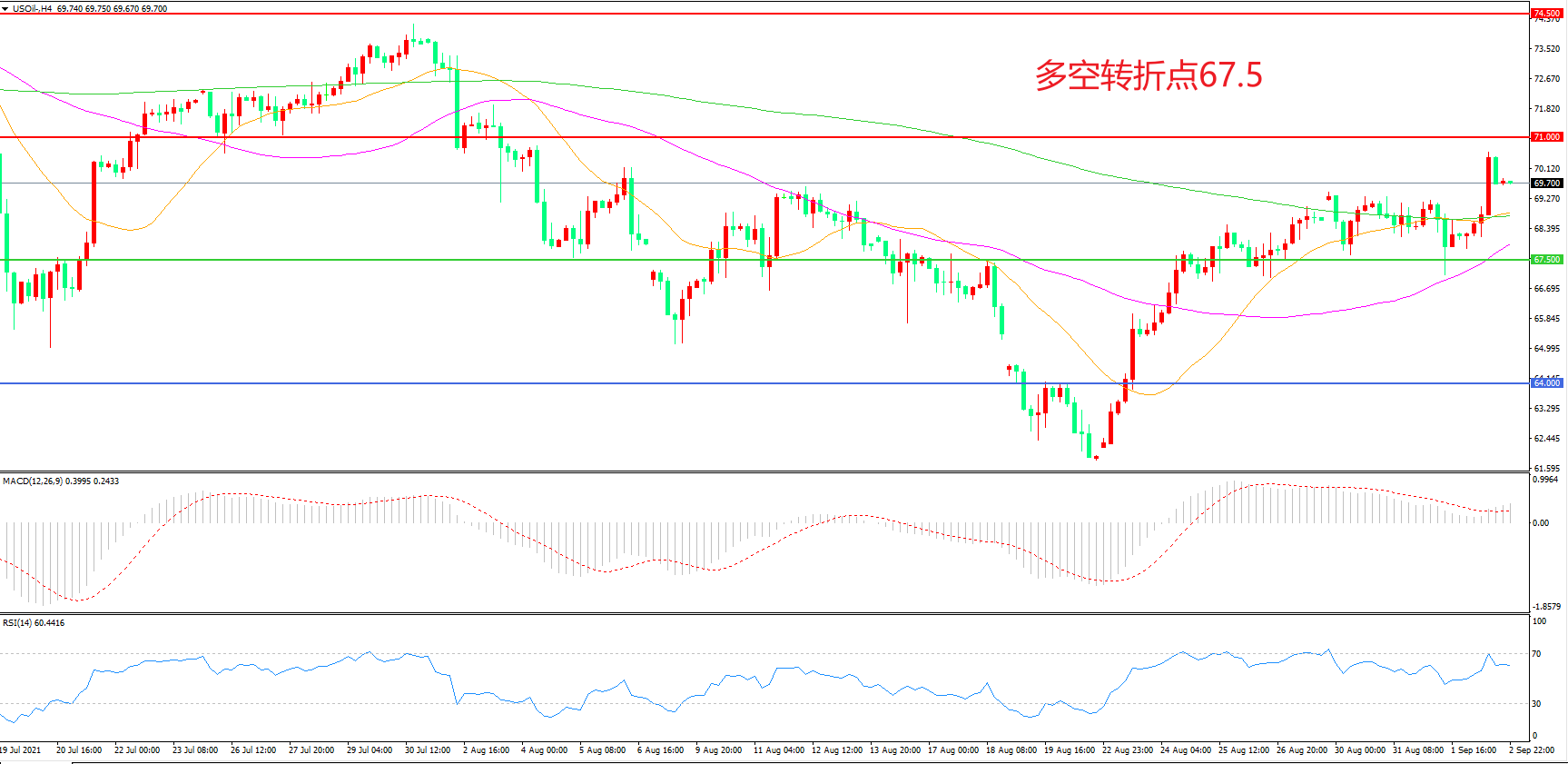 交易策略:在67.50之上看涨,目标71.00 74.50