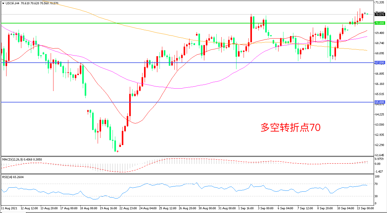 交易策略:在70.00之上看涨,目标72.50                75.00