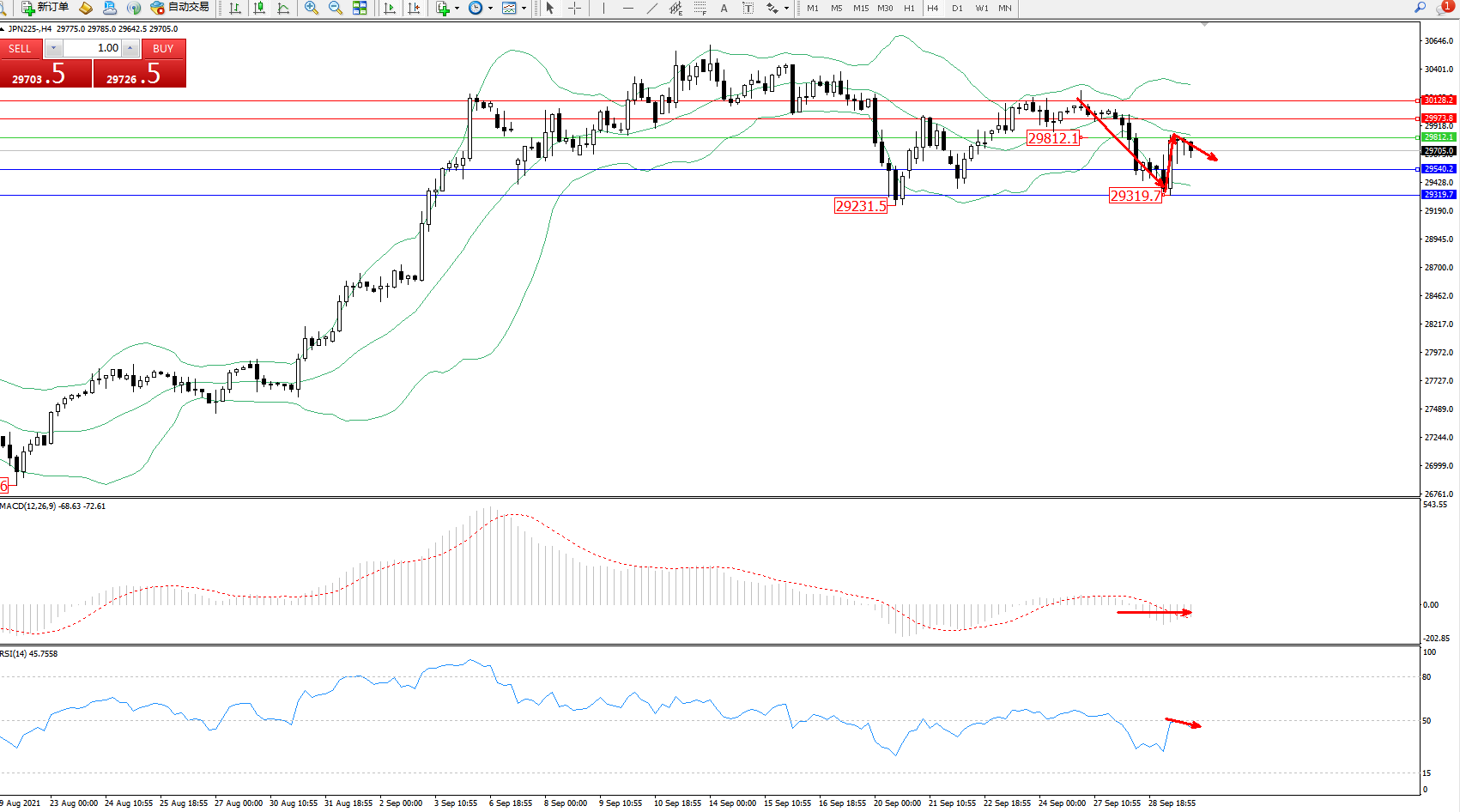交易策略:29812下方看跌,目标29540、29319
