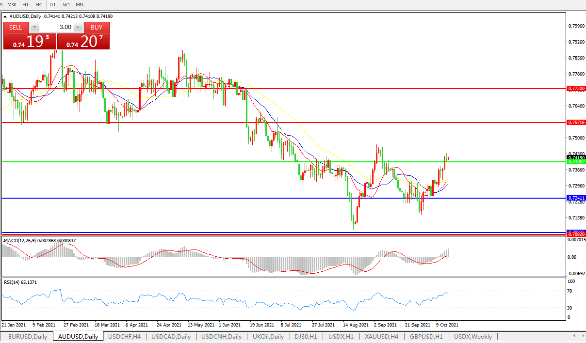 交易策略:0.7400上方看涨,目标0.7570、0.7720