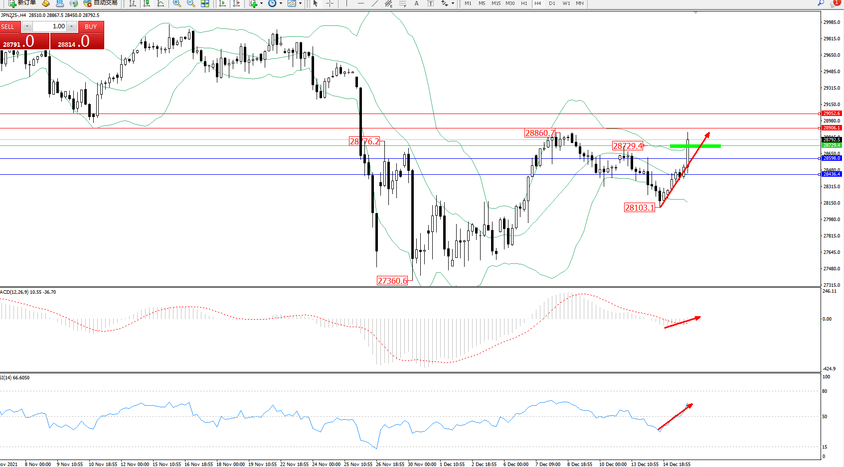 日经指数JPN225——4小时K线图显示: