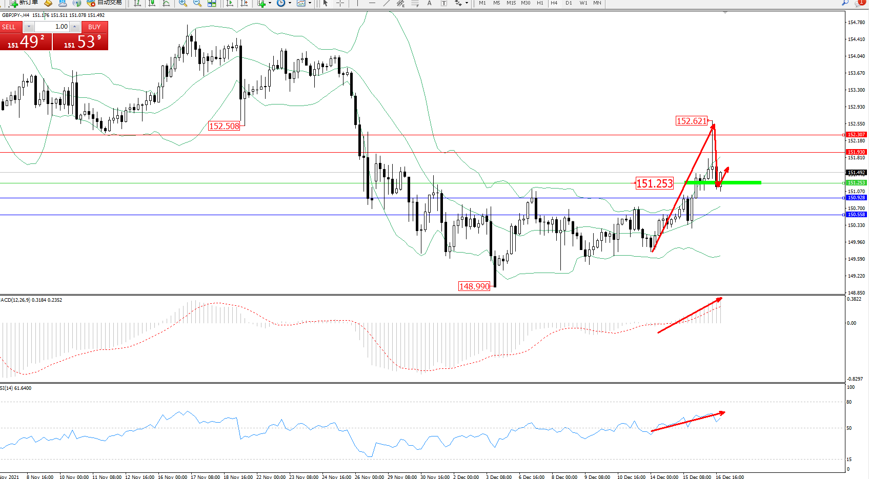 交易策略:151.253上方看涨,目标151.930、152.307
