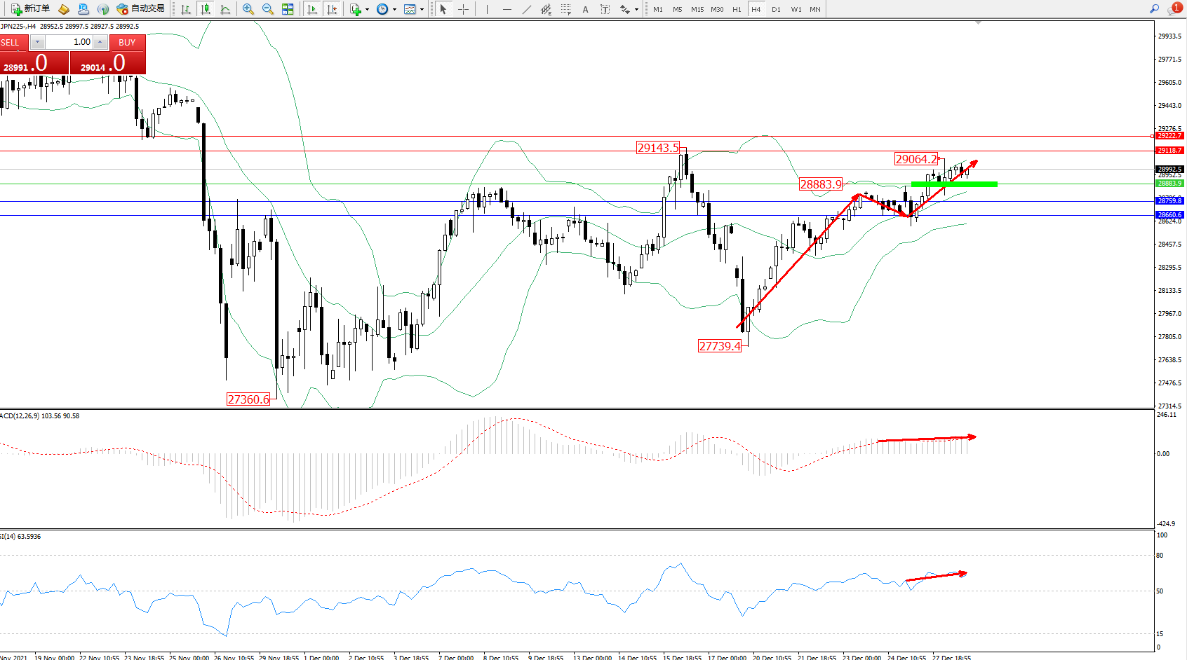 日经指数JPN225——4小时K线图显示: