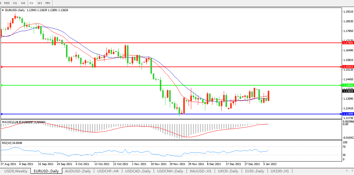 欧元兑美元涨0.57%至1.1361,因就业报告公布后欧元兑美元走强,此前欧元区12月通胀率升至5%的数据几乎没有引起市场反应。欧元区政策制定者曾表示,他们预计通胀将在2022年逐渐放缓,今年可能不需要加息。