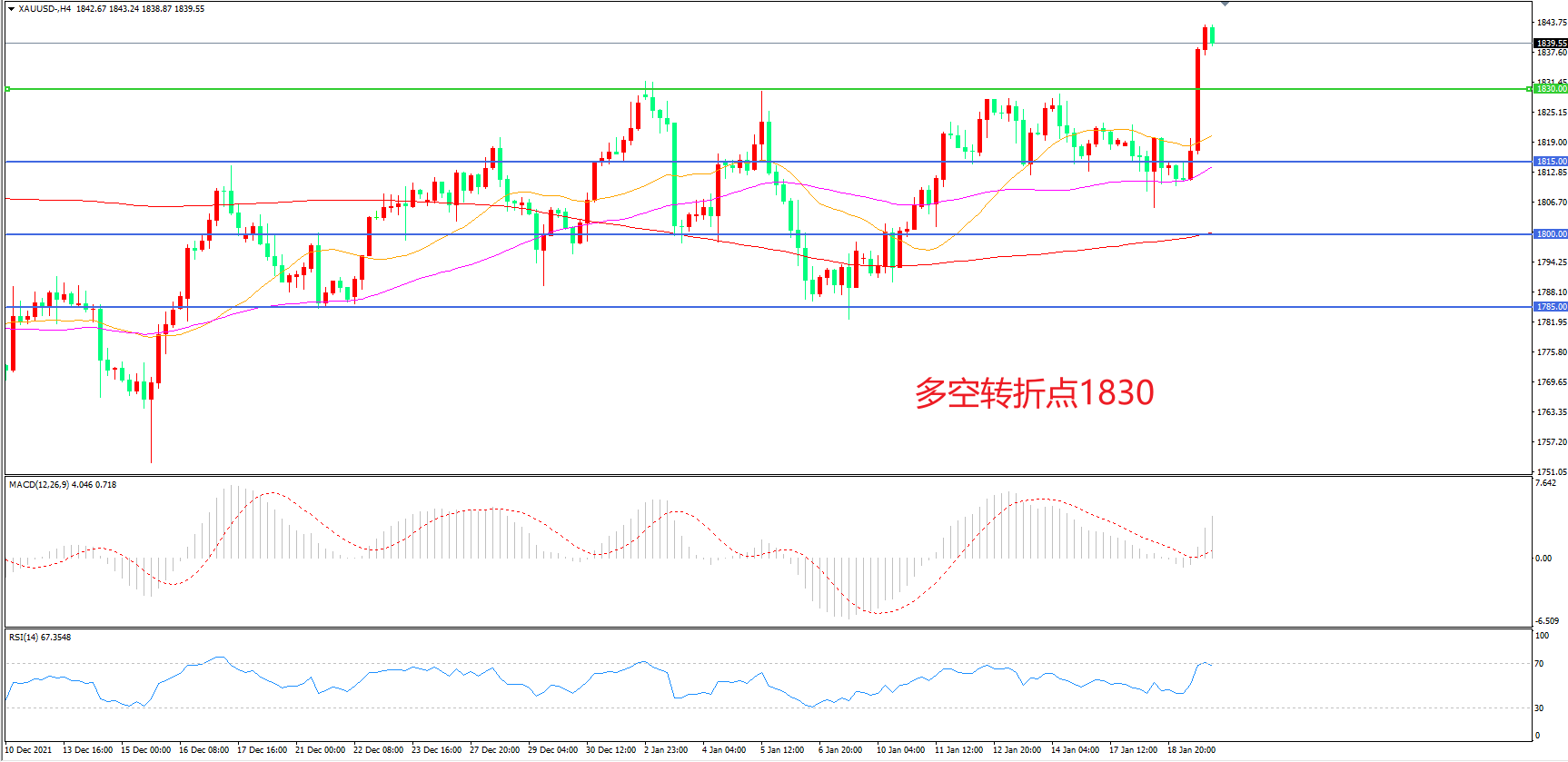 交易策略:在1830.00之上看涨,目标1845.00       1860.00