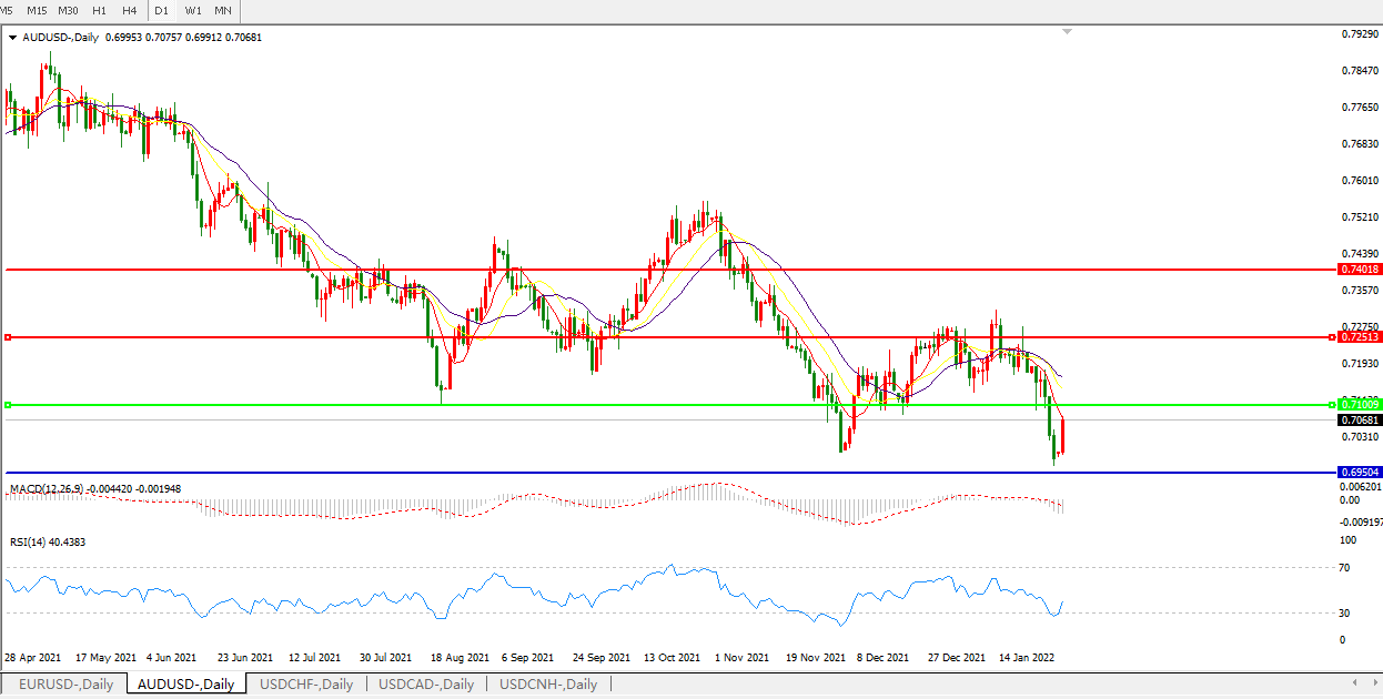 交易策略:0.7100下方看跌,目标0.6950、0.6800