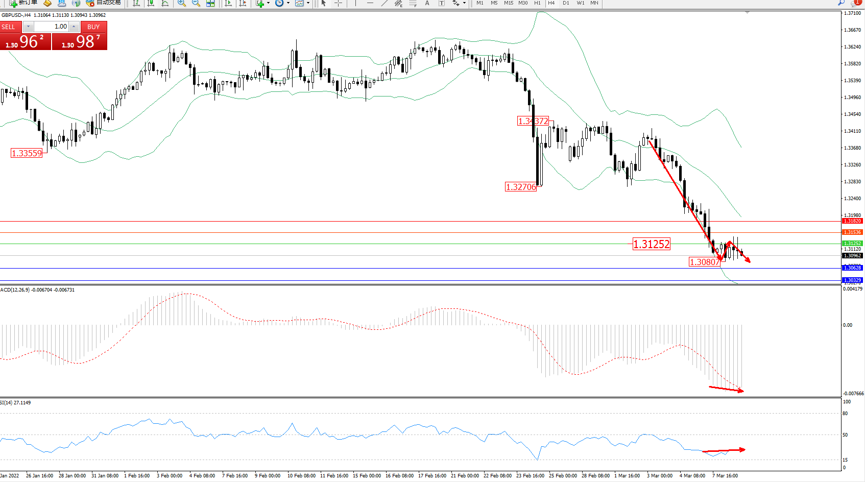 英镑美元GBPUSD ——4小时K线图显示: