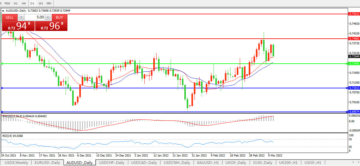 俄乌战争牵动世界,澳元兑美元小幅回落