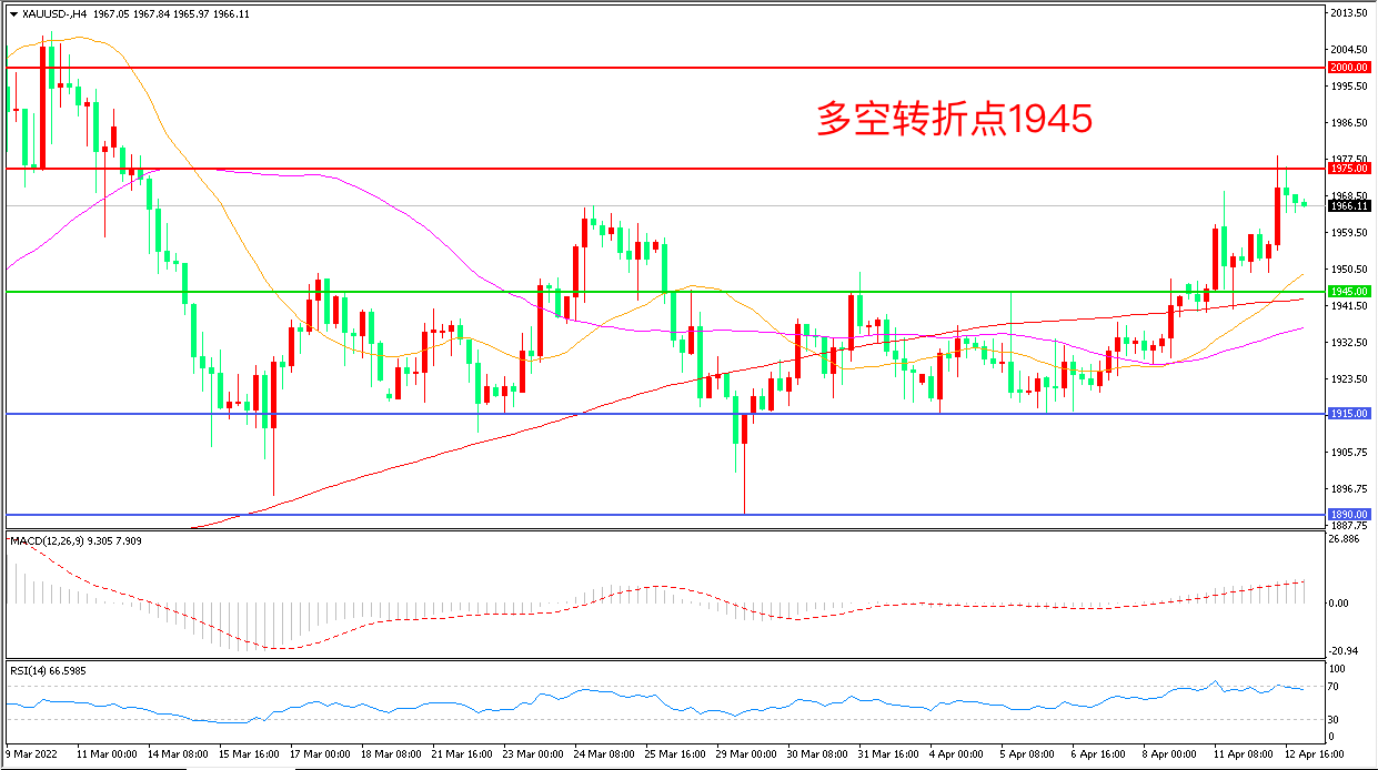 周二(4月12日),俄罗斯总统普京在记者会上表示,乌克兰方面已经偏离了俄乌谈判重回“死胡同”状态,避险情绪骤然升高,现货黄金大幅拉升,收报1966.65美元/盎司。此前公布的美国CPI数据创逾40年新高,避险与通胀走高的双重支撑下,金价仍将维持强势。