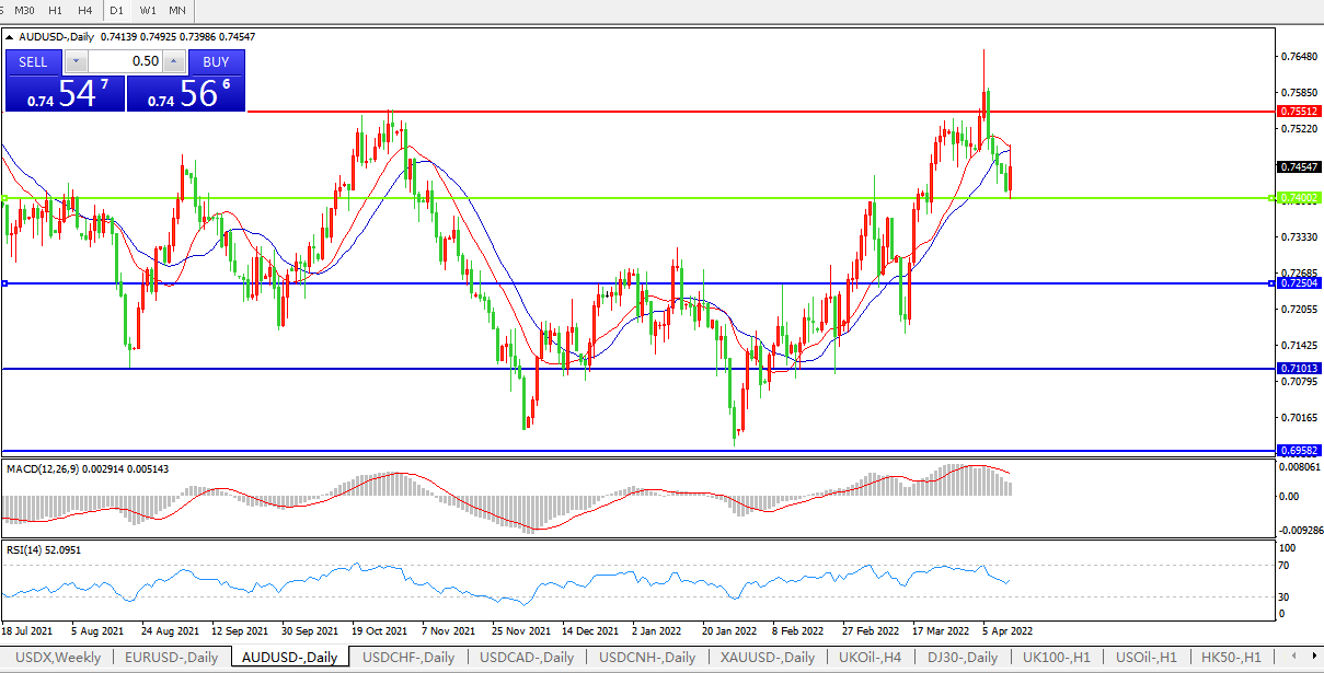 交易策略:0.7400上方看涨,目标0.7550、0.7650