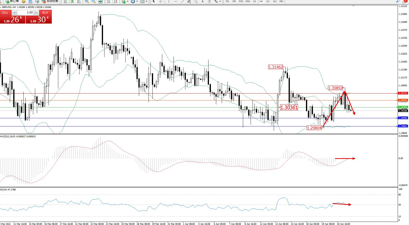 英镑美元GBPUSD ——4小时K线图显示: