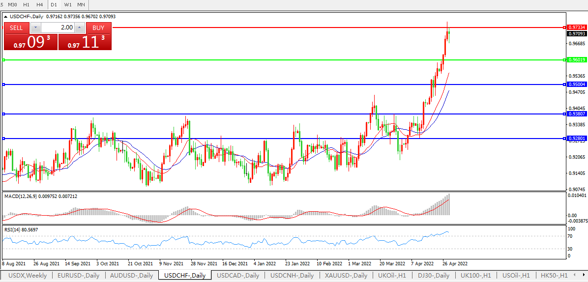 美元兑瑞郎USDCHF    日线图: