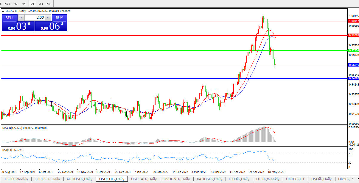 美元兑瑞郎USDCHF 日线图: