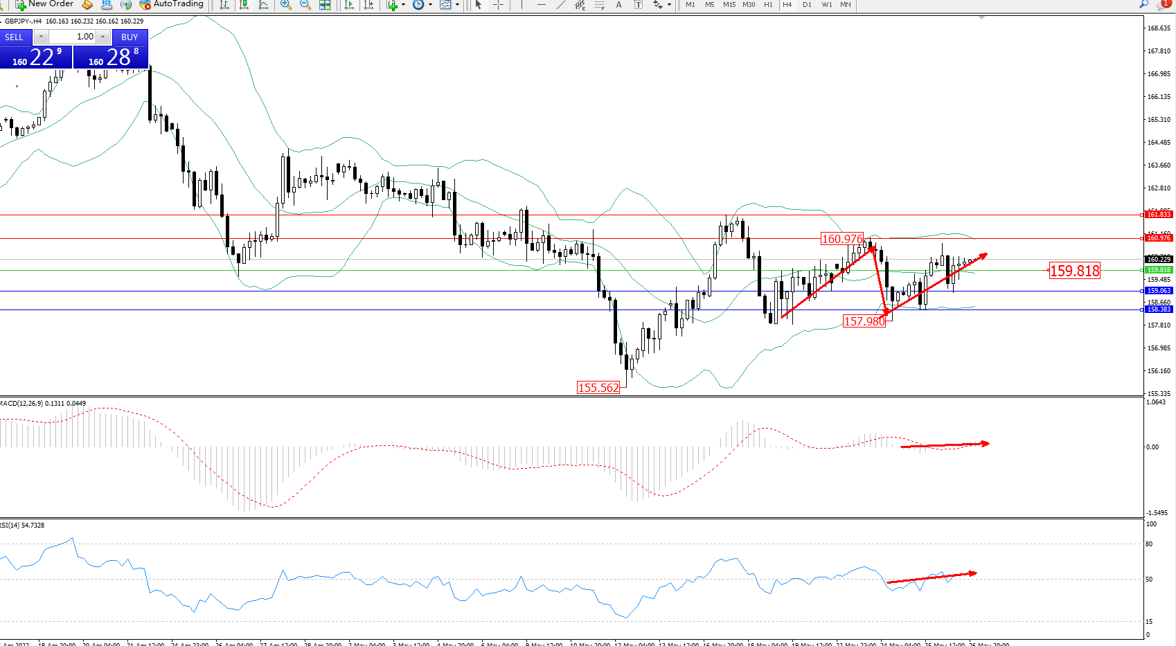 备选策略:159.818下方看跌,目标159.063、158.383