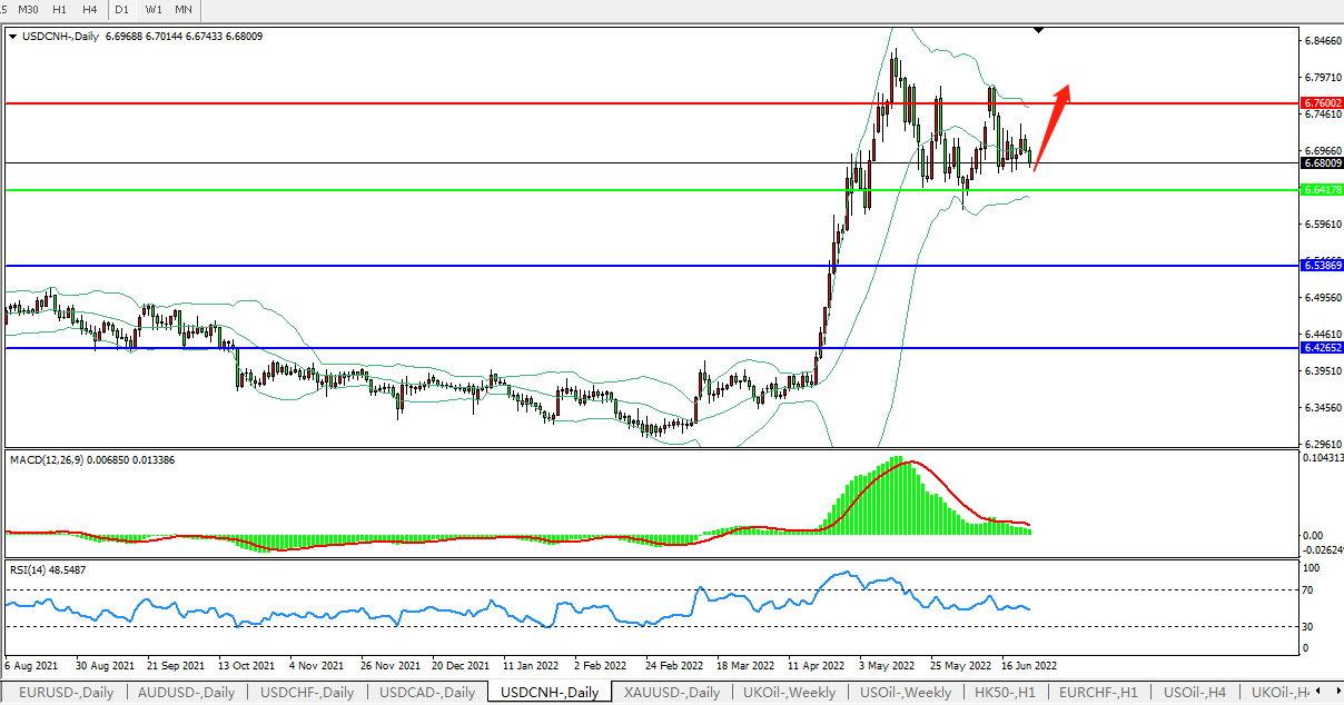 交易策略:在6.6416之上,看涨,目标价位为6.7600、6.8870。