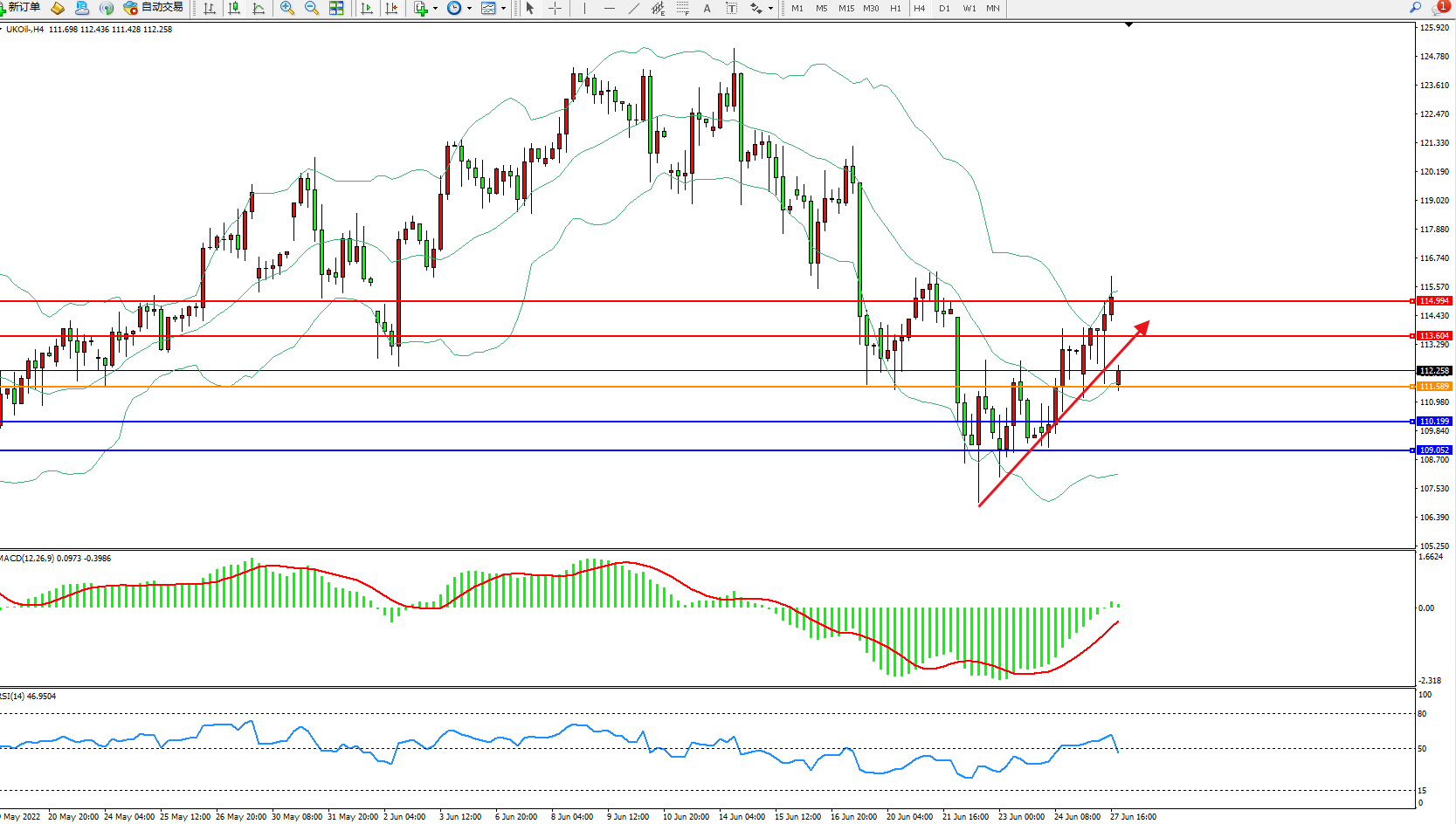 交易策略:111.589上方看涨,目标113.604、114.994