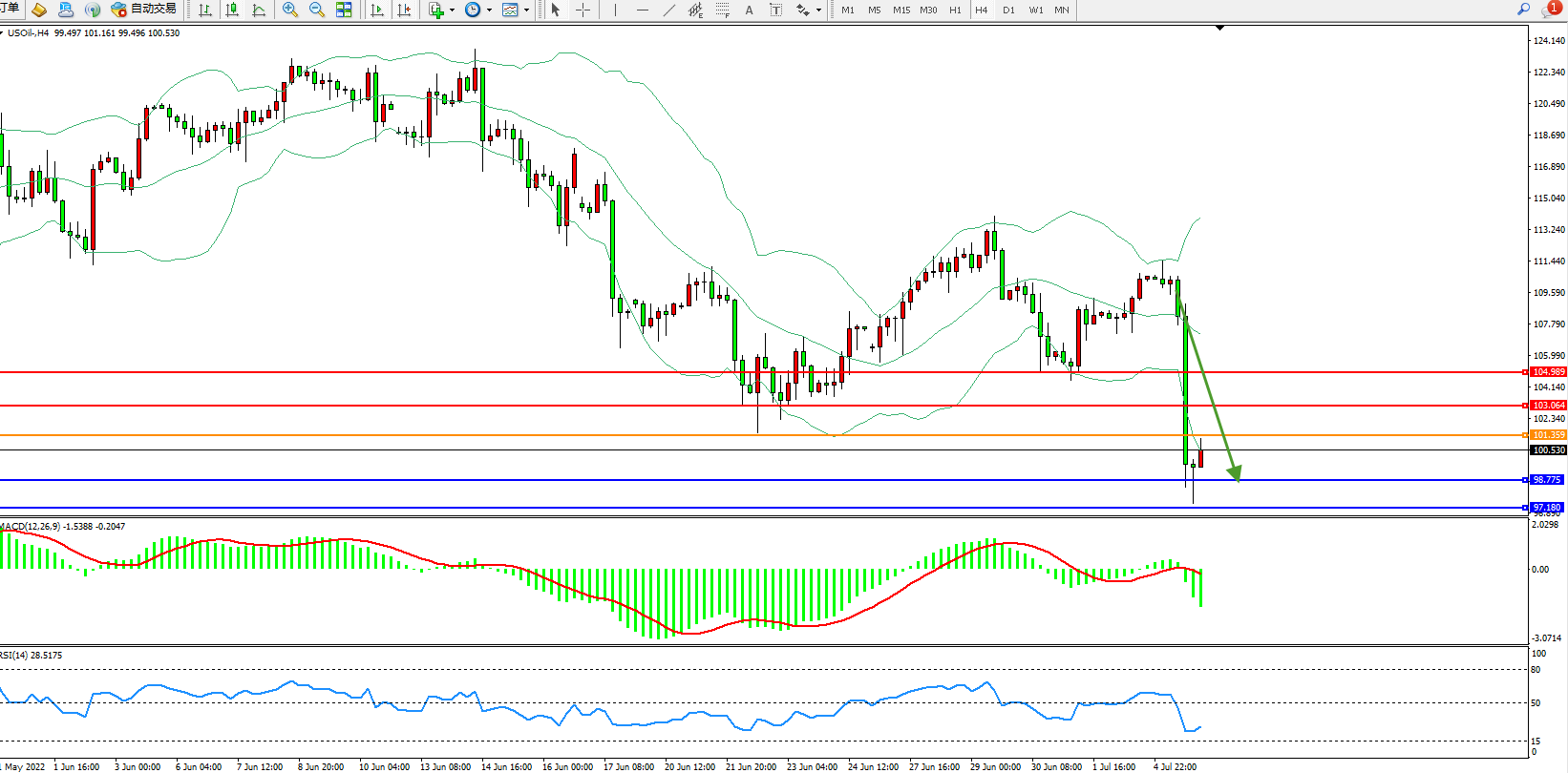 原油USOil——4小时K线图显示: