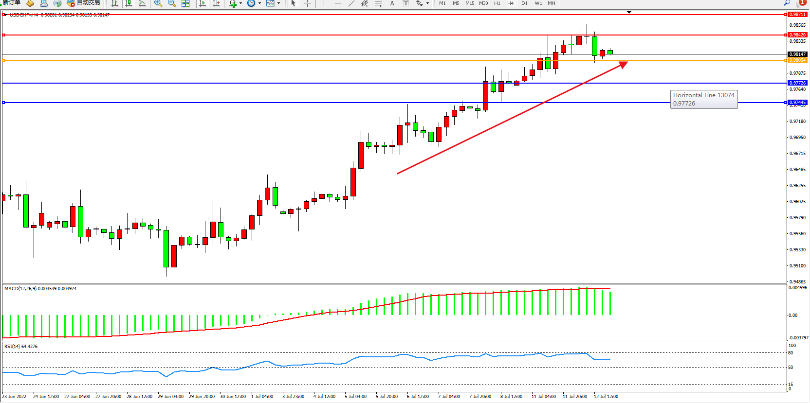 支撑位:0.97726、0.97445