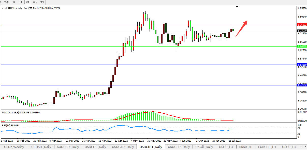 美元人民币USDCNH 日线图: