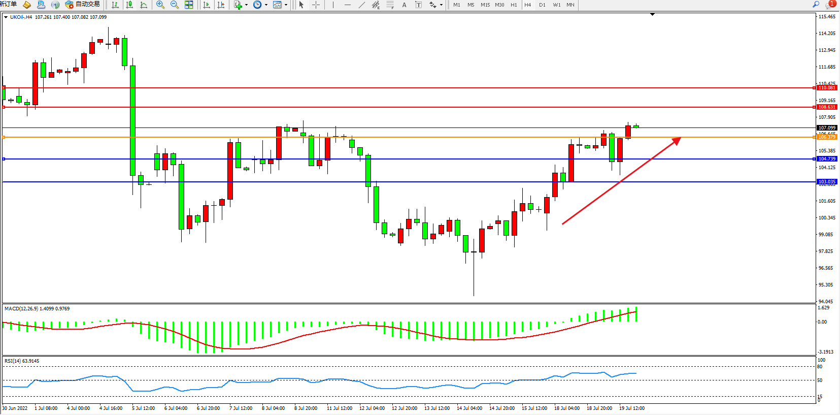 布油维持107.099附近震荡,布伦特原油创下7月4日以来最高收盘水平,早间API数据显示,截至7月15日当周,原油库存增加了约190万桶。