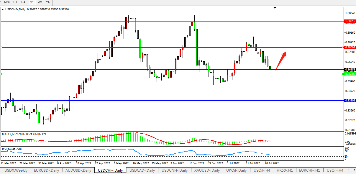 USDCHF:测试0.9600附近支撑 USDCHF  USDCAD
