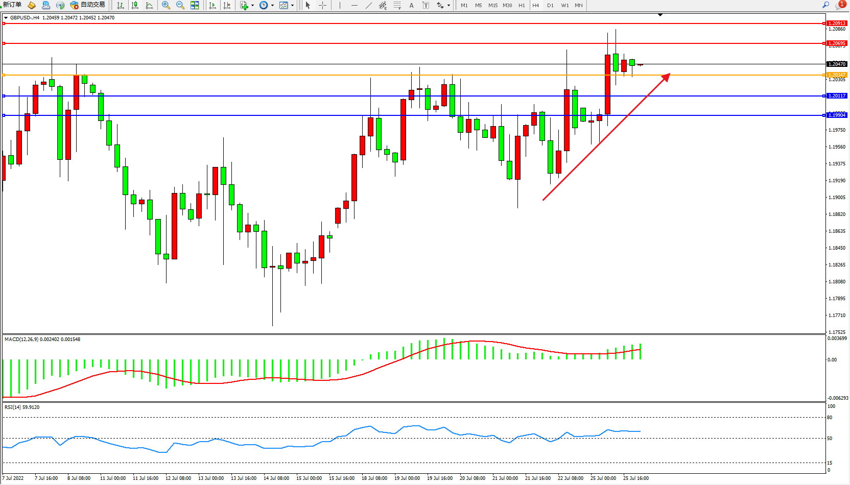 英镑美元GBPUSD ——4小时K线图显示: