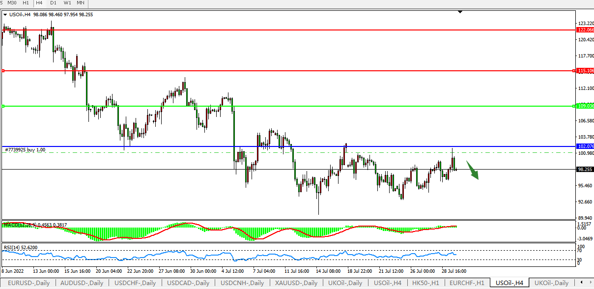 美国原油USOil 4小时图