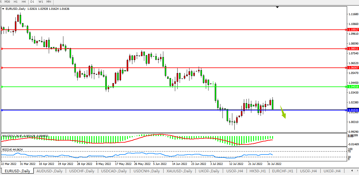 交易策略:1.0400下方看跌,目标1.0150、1.0000