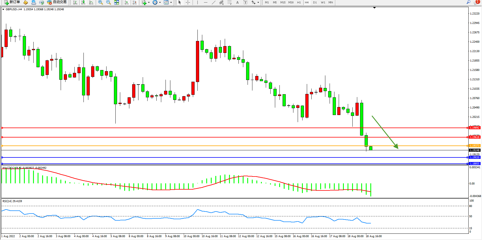 英镑美元GBPUSD ——4小时K线图显示: