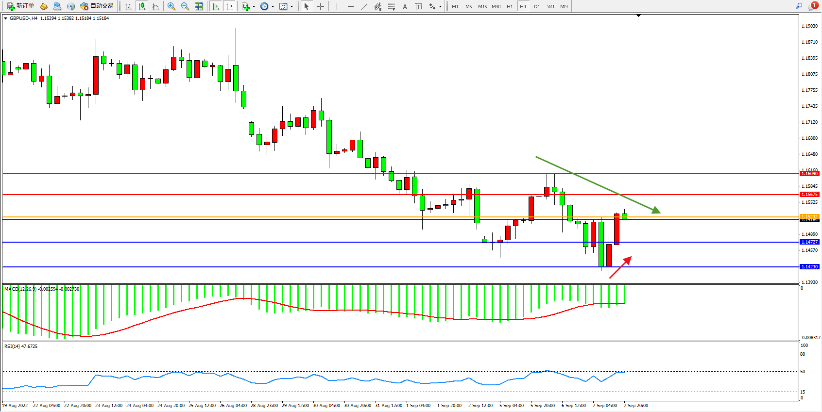 英镑美元GBPUSD ——4小时K线图显示: