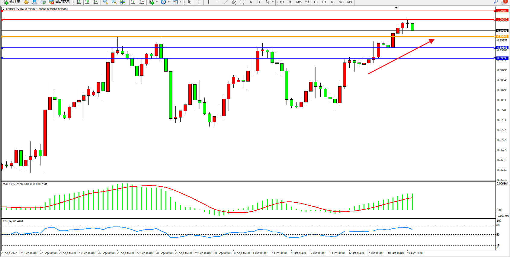 美元瑞郎USDCHF——4小时K线图显示: