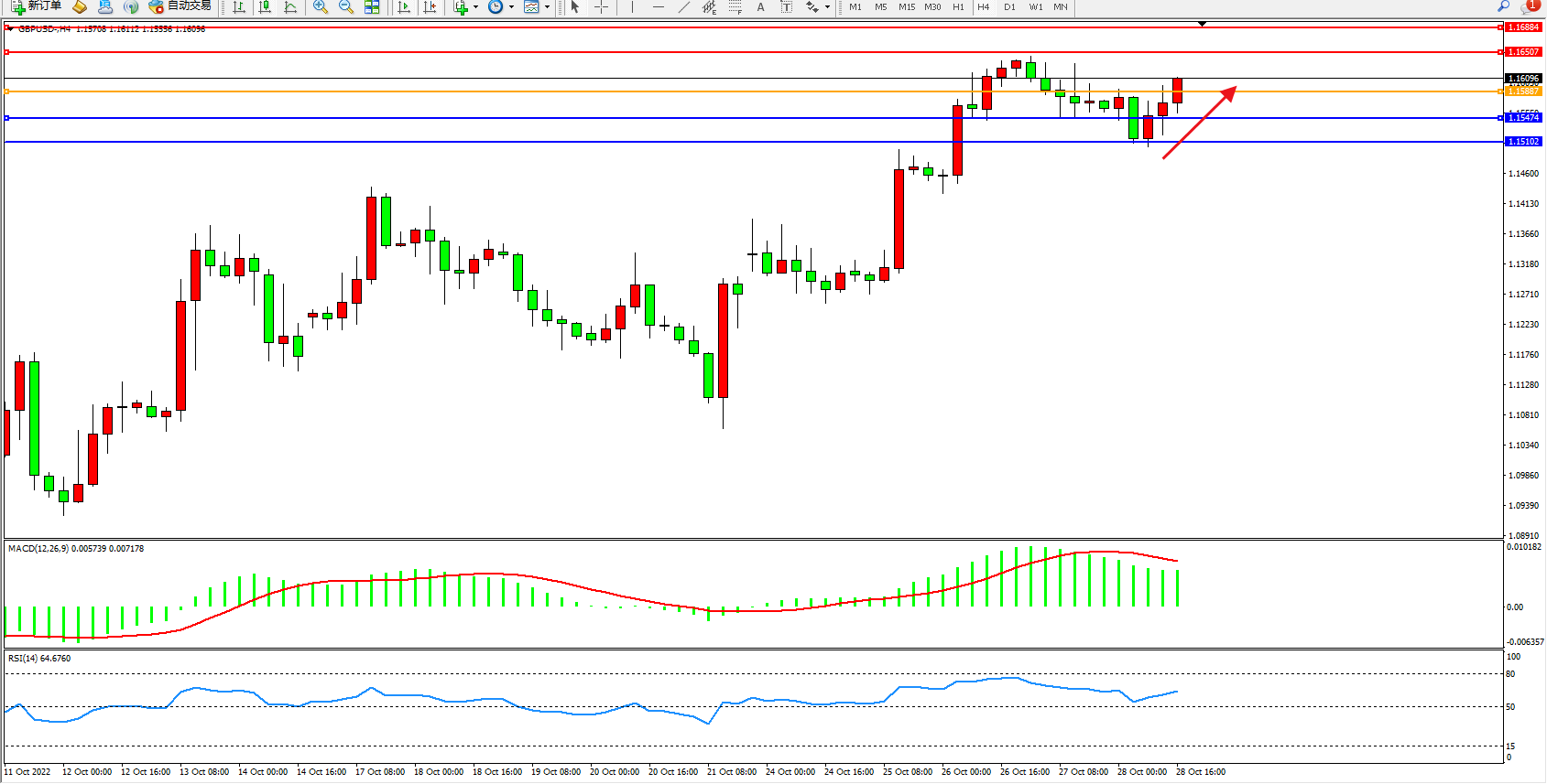 英镑美元GBPUSD ——4小时K线图显示: